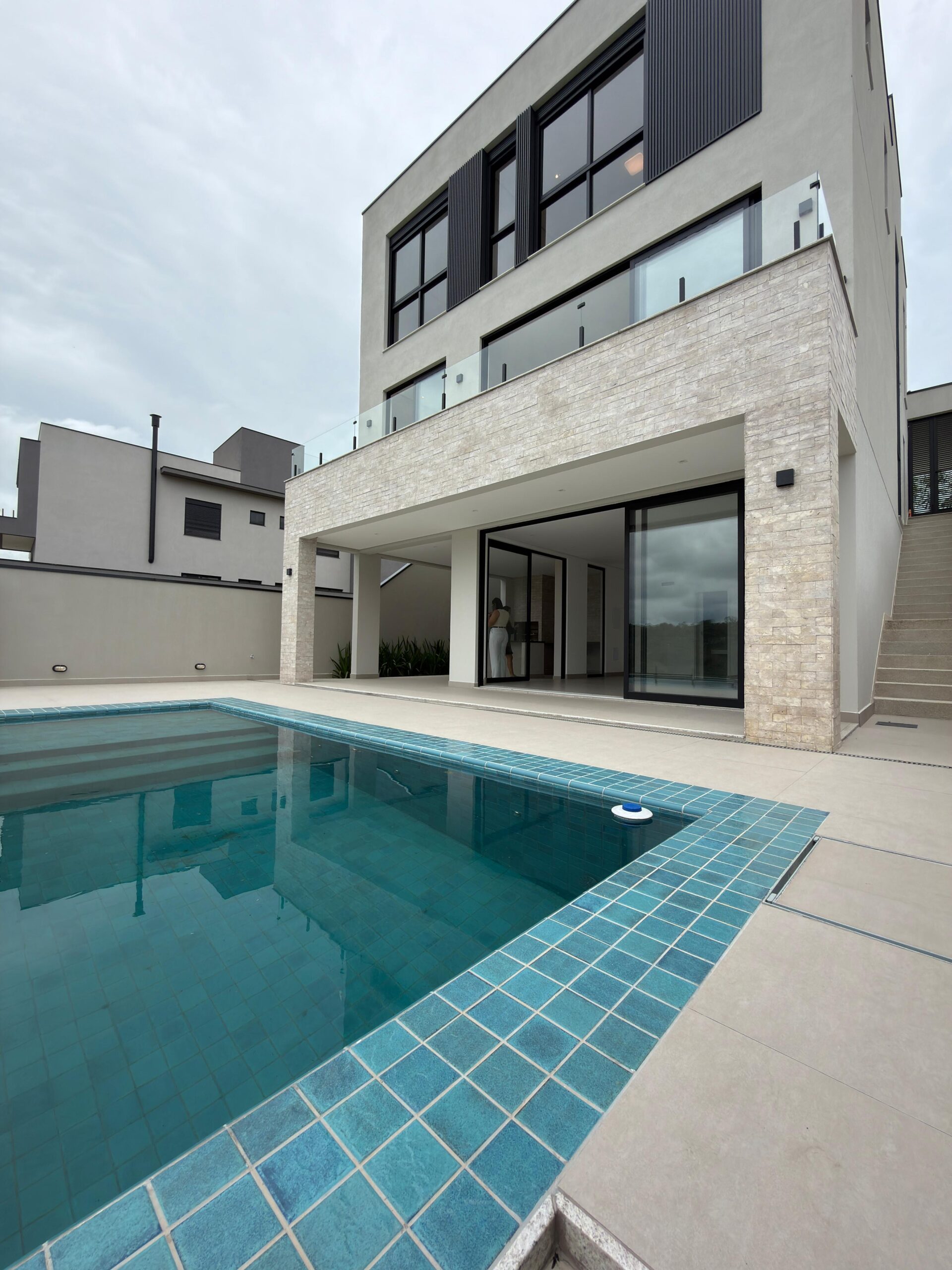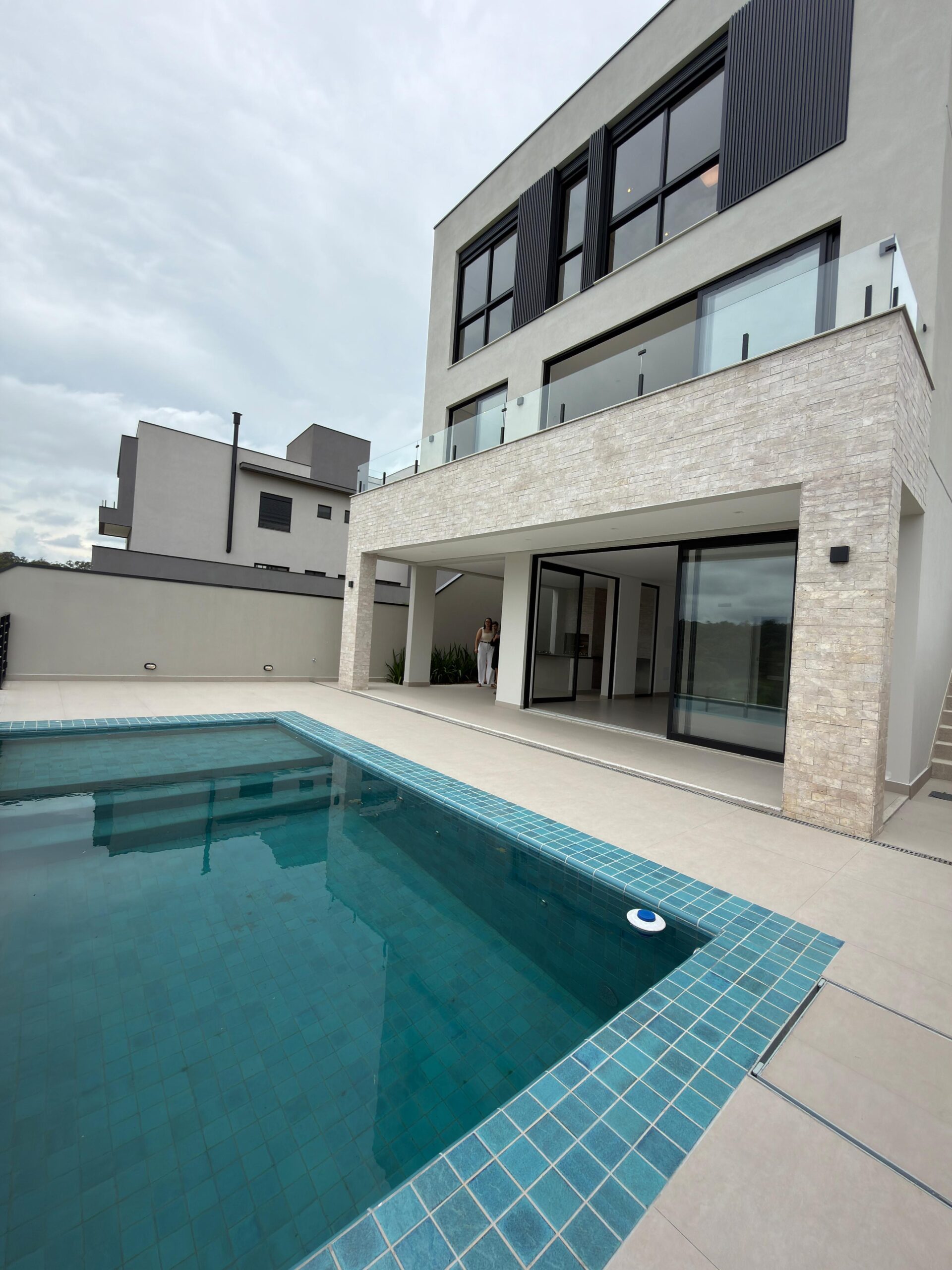 Casa contemporânea de alto padrão localizada em um dos condomínios mais valorizados de Mogi das Cruzes, com projeto moderno, arquitetura imponente, ambientes amplos e excelente integração das áreas sociais, além de vista verde privilegiada a partir da sala e das suítes. O imóvel conta com 4 suítes, todas com closet e persianas automatizadas, sala de estar e jantar integradas à cozinha americana equipada com cooktop e coifa de ilha, espaço gourmet completo com churrasqueira e ilha com cooktop, varanda ampla integrada à área de lazer, 5 banheiros mais lavabo, despensa, lavanderia ampla, depósito e garagem coberta. Possui ainda infraestrutura para ar-condicionado em todos os ambientes, aquecimento central a gás, rede de água pressurizada e piscina com iluminação em LED e hidromassagem. Os acabamentos são de alto padrão, com esquadrias Conceito – Linha Gold, louças Deca e metais Docol, porcelanato 90×90 nas áreas sociais, piso vinílico na área íntima, fachada frontal em Pedra Moledo e fachada da piscina em tijolinho Travertino, reforçando a sofisticação e o cuidado em cada detalhe do projeto.