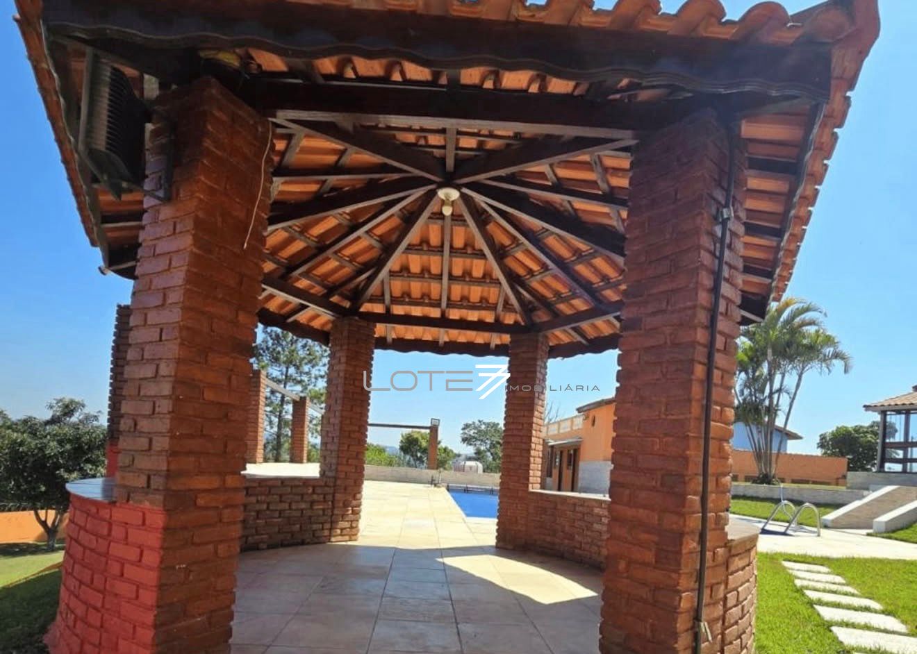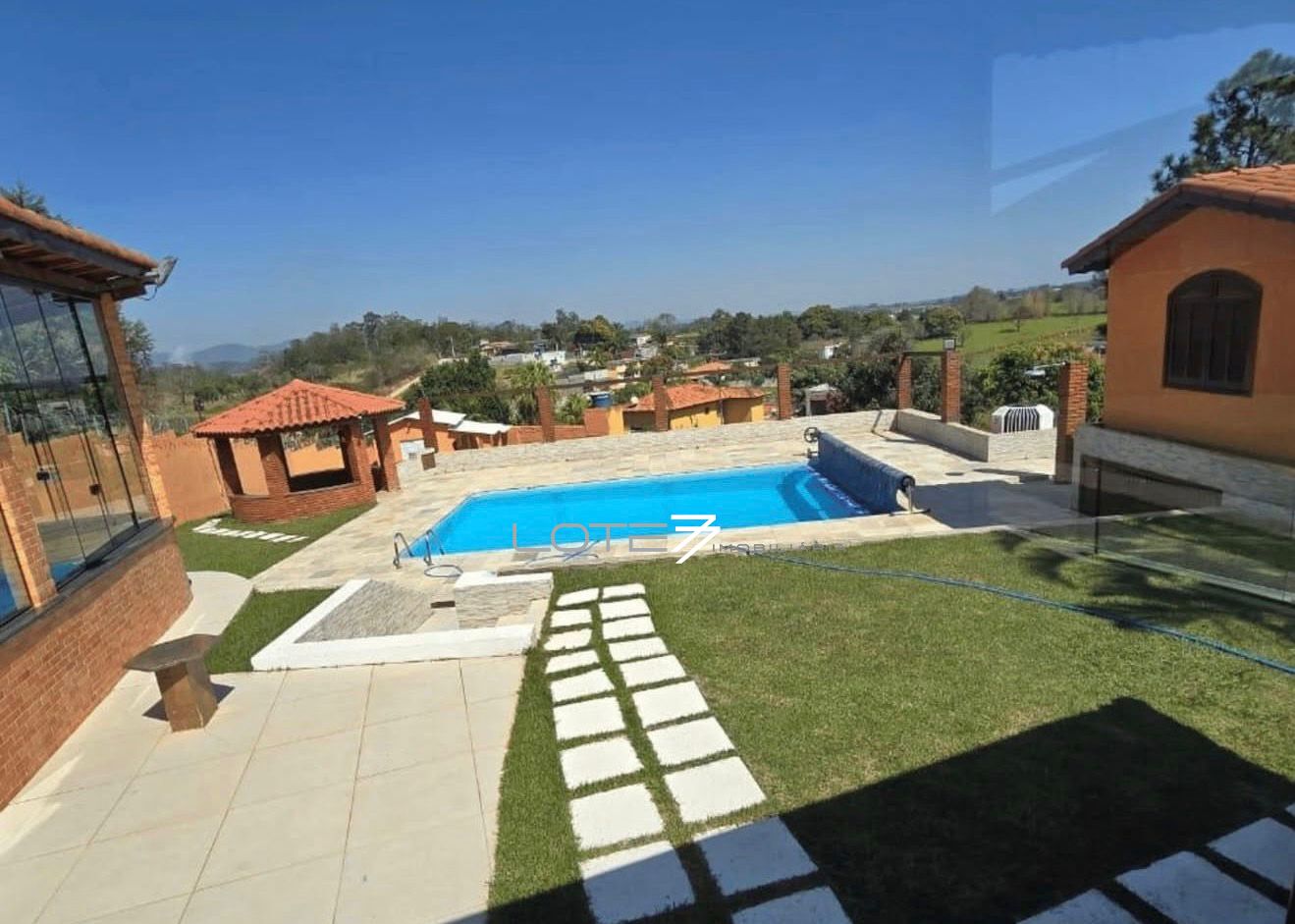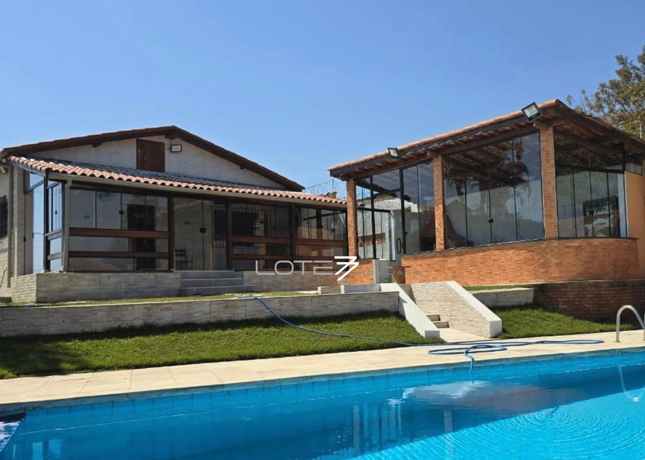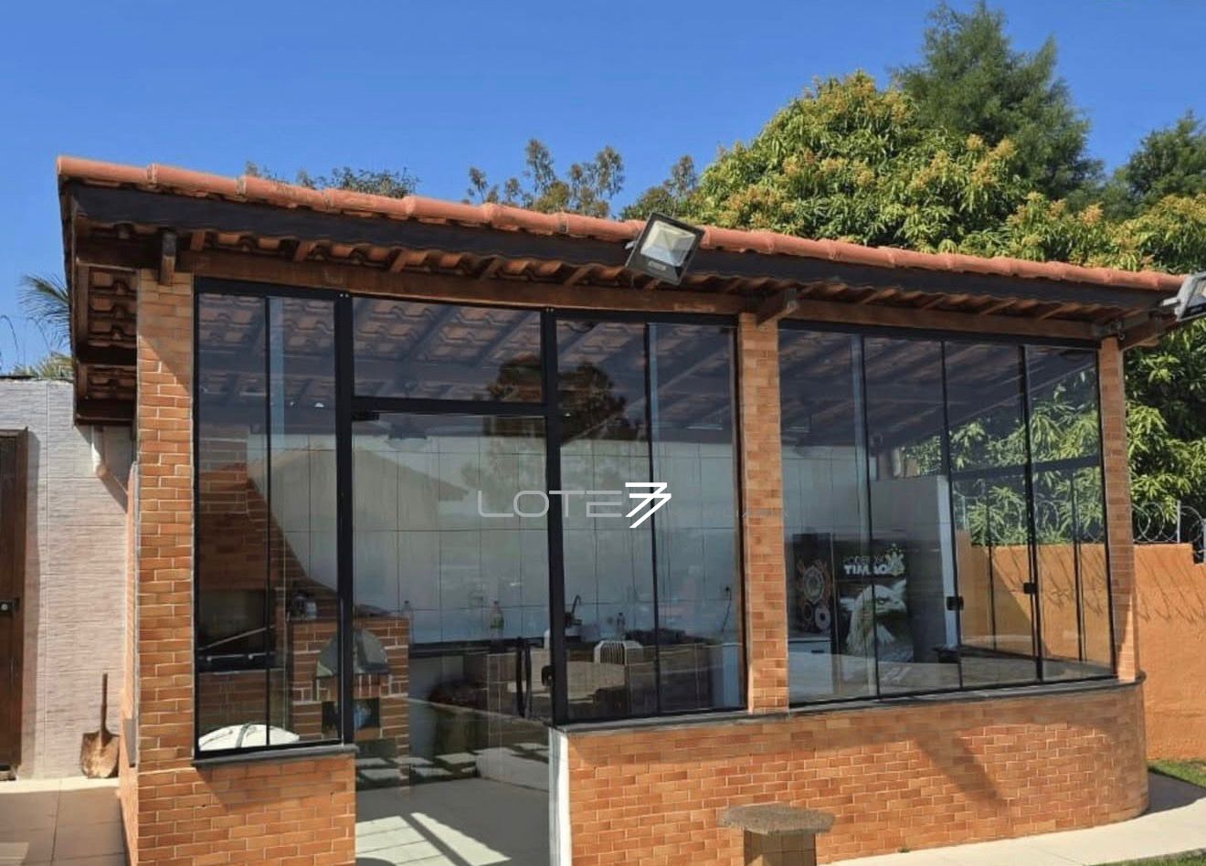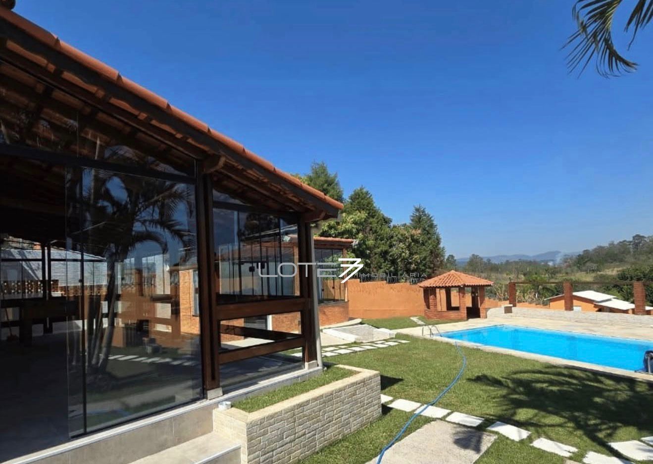 O imóvel conta com piscina ampla para aproveitar os dias de sol, área gourmet completa — ideal para receber família e amigos com todo o conforto — além de casa para caseiro, garantindo mais praticidade no dia a dia.